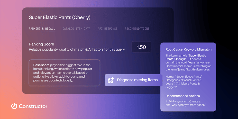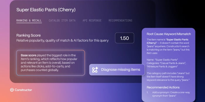 The increasing complexity of search and merchandising decisions facilitated by AI has led to an explainability problem for merchandisers. They’re expected to explain outcomes shaped by dozens of moving parts: ranking models, behavioral signals, campaign settings, and searchandizing rules.